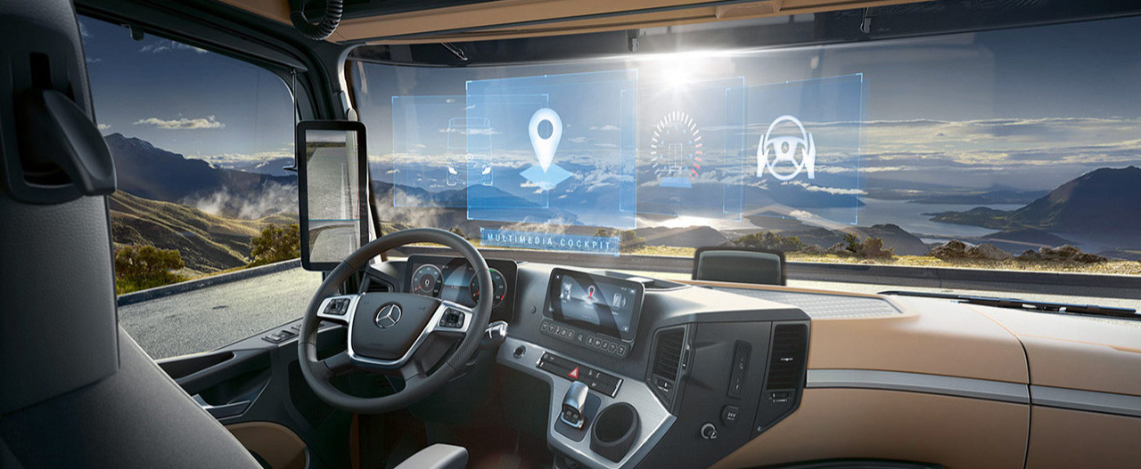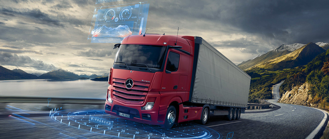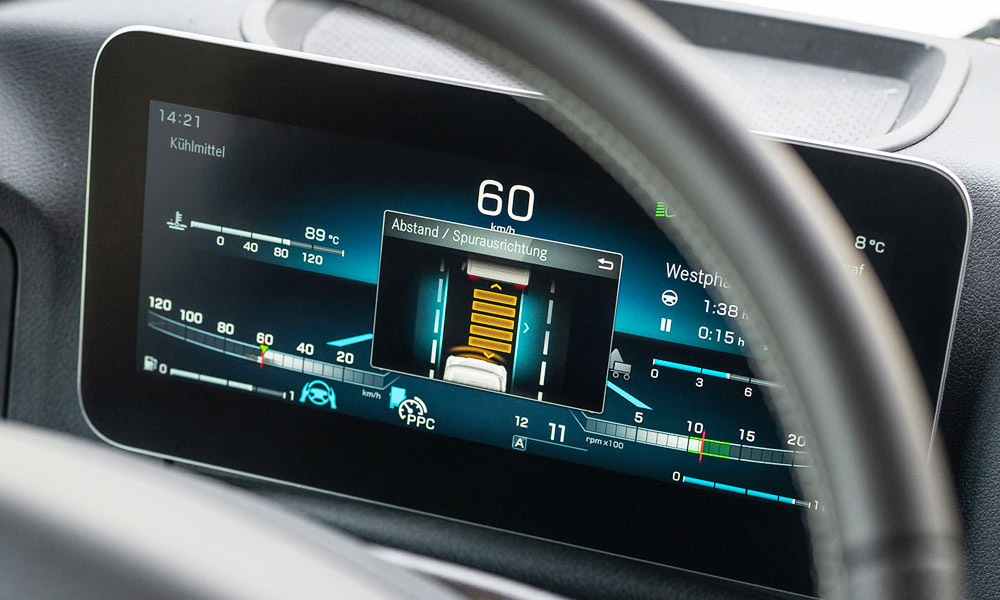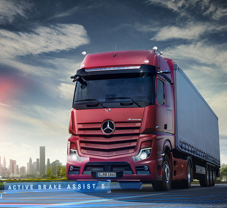 El Actros incluye de serie una gran variedad de módulos de seguridad para proteger al conductor, al vehículo y a otros usuarios de la vía pública. Los Digital Assistants no eximen de responsabilidad al conductor, pero pueden ayudarle eficazmente ante situaciones críticas.